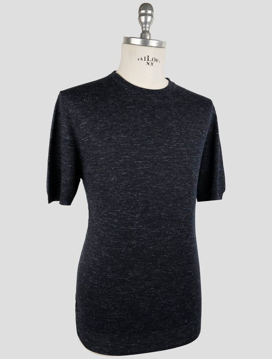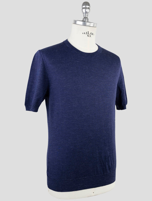 T-shirt en Soie Cachemire Lin Bleu Kiton