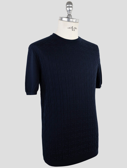 T-shirt en Coton Texturé Bleu Kiton