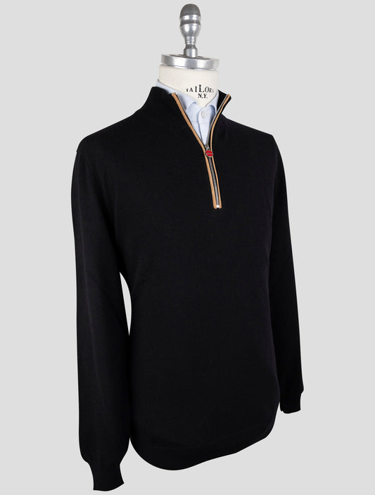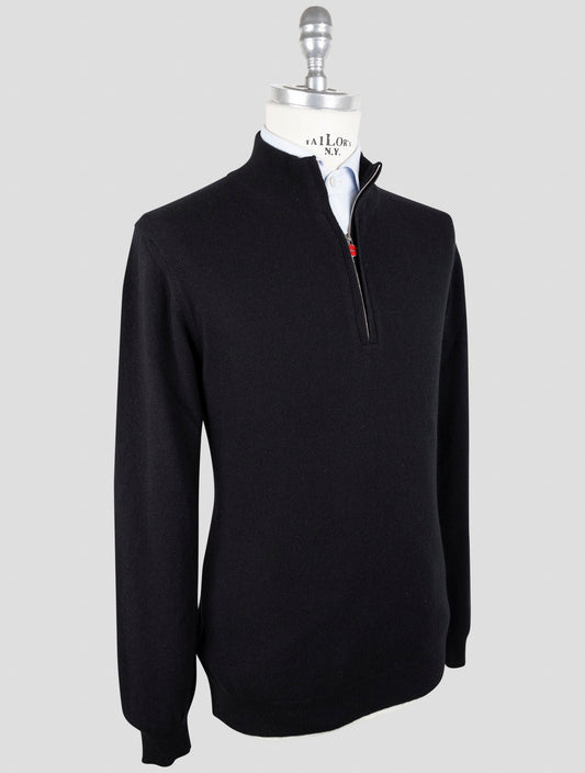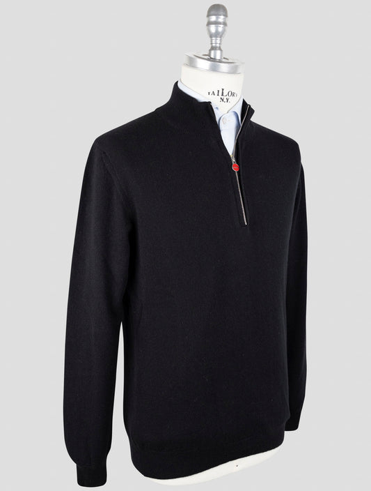 Kiton Pure Cashmere Half-Zip Sweater Black Italian Luxury