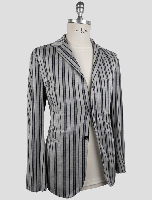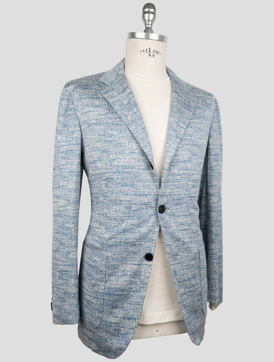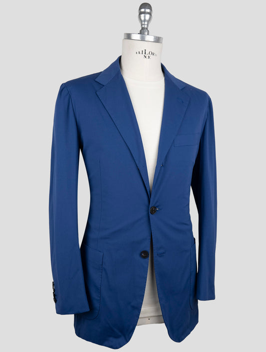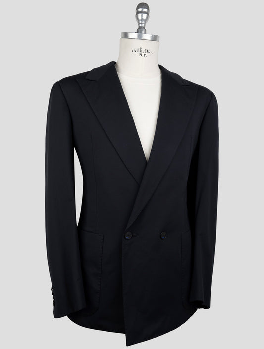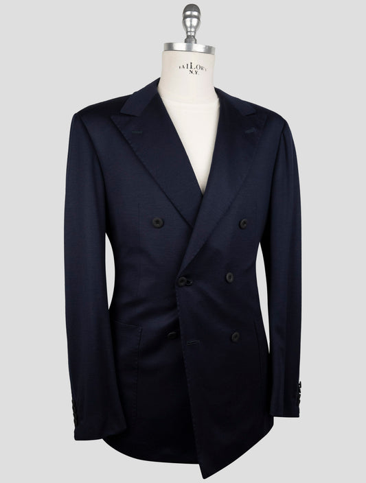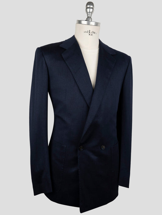 Kiton KNT Blue Virgin Wool Cotton Double Breasted Blazer Italy