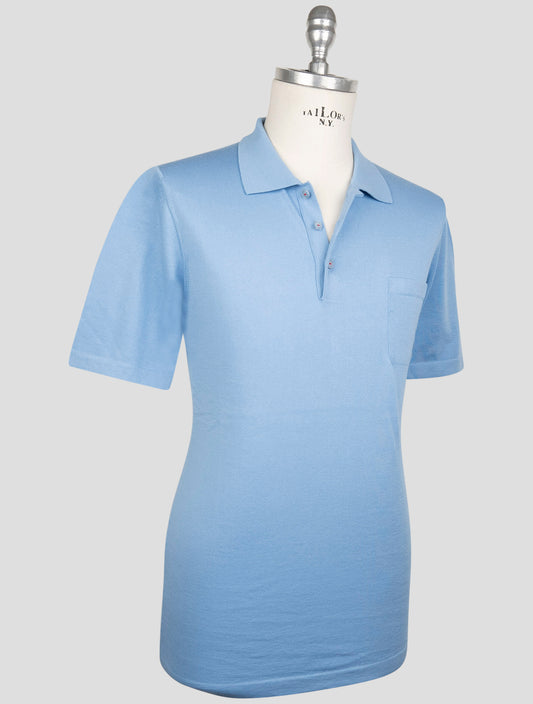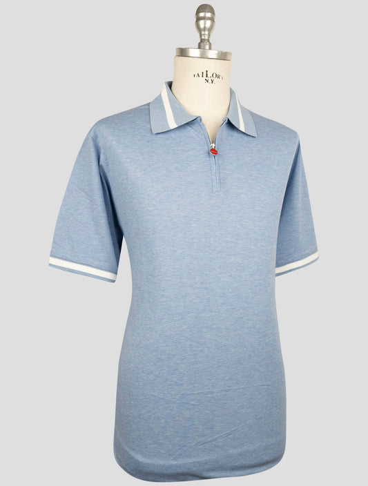 Поло из шелка и хлопка Kiton светло-голубого цвета