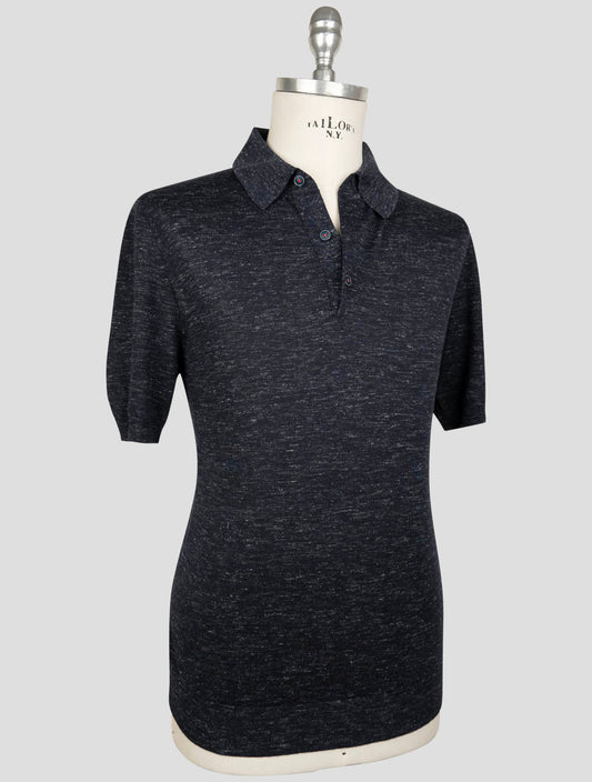 Поло из шелка, кашемира и льна Kiton синего цвета