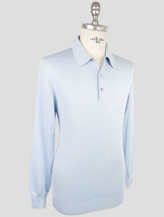 Поло-свитер Kiton светло-голубого цвета из кашемира и льна