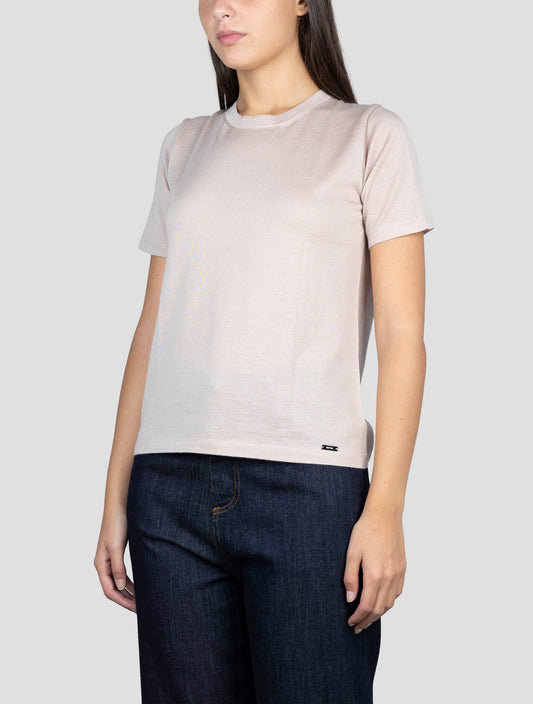 Kiton Cashmere Silk T-Shirt Women's Beige Handmade Italian