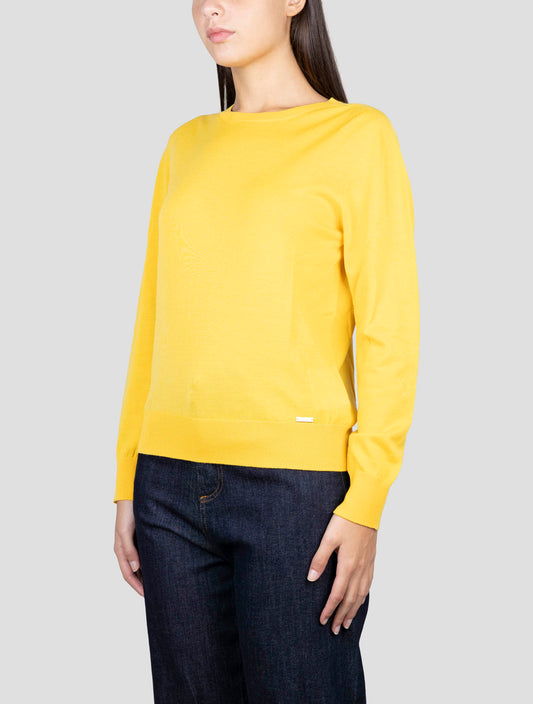 Kiton Yellow Wool Crewneck Sweater Women's - Italian 100% Wool