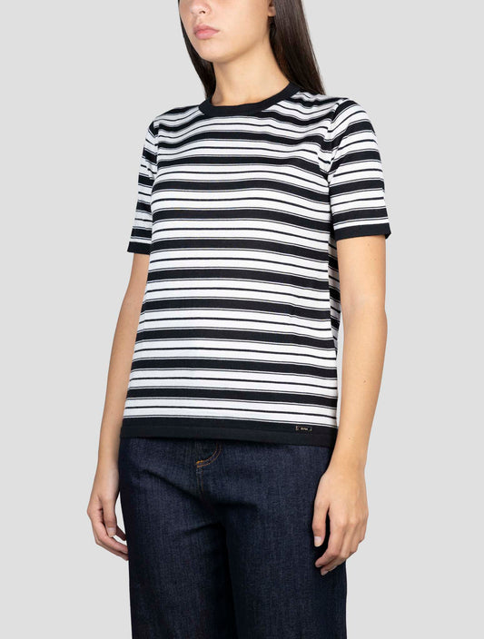 Kiton Cashmere Silk T-Shirt Women Black White Striped Italian