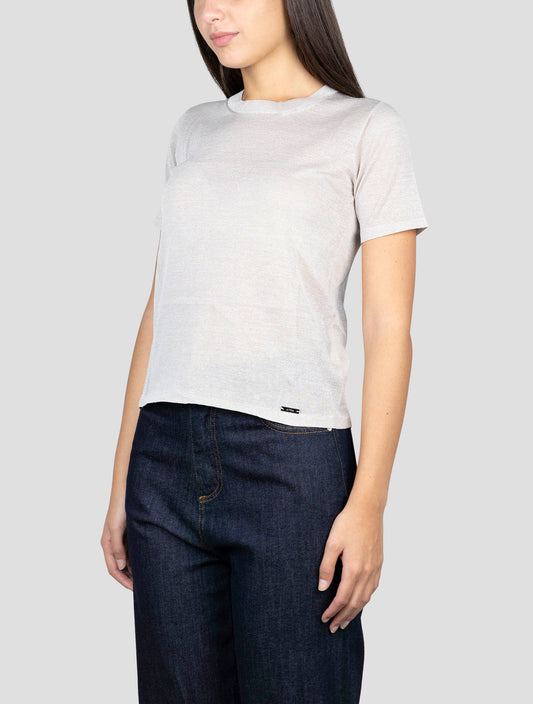 Kiton Silk Blend T-Shirt Women's Taupe Italian Handmade Luxury