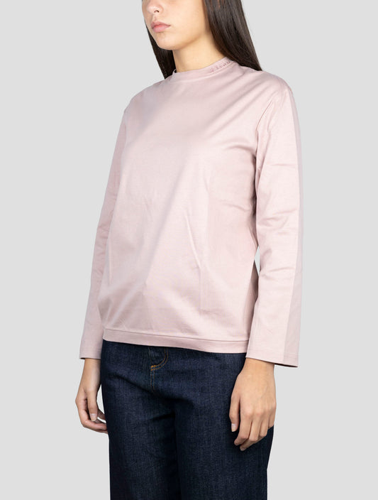 Kiton Women's Pink Cotton Crewneck Sweater - Handmade Italian