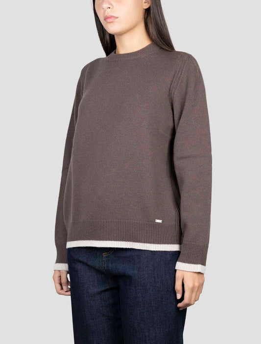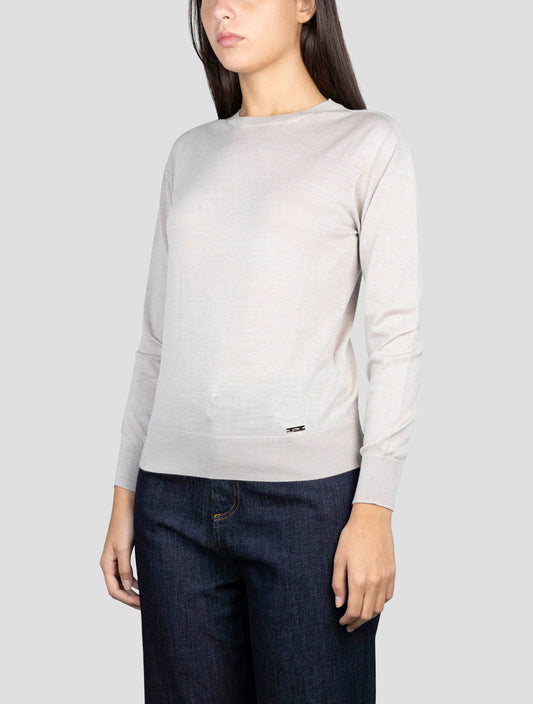 Kiton Women's Taupe Wool Crewneck Sweater - Handmade Italian