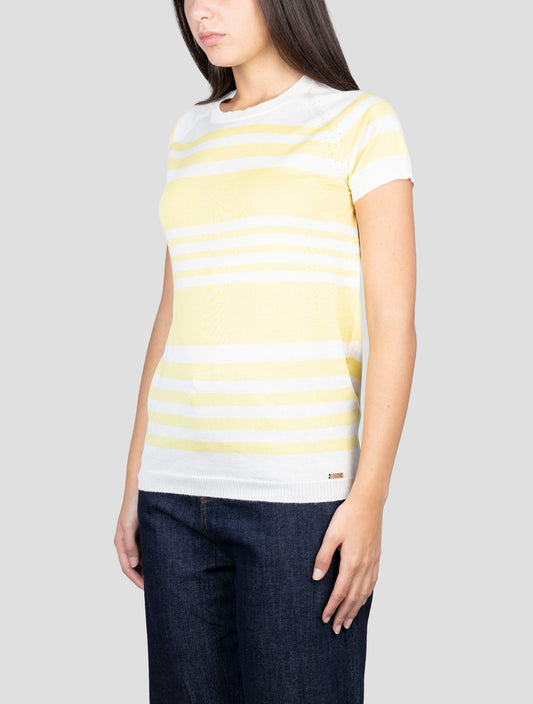 Kiton Handmade Cashmere Silk T-Shirt Yellow White Women's Italian