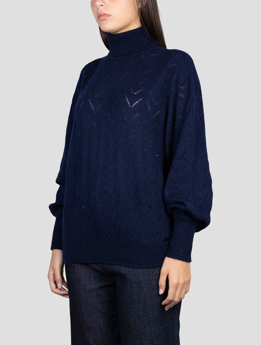 Kiton Blue Cashmere Silk Turtleneck Sweater Women - Handmade Italian