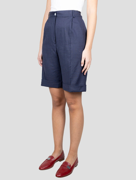 Kiton Blue Linen Viscose Short Pants - Handmade Italian Women's