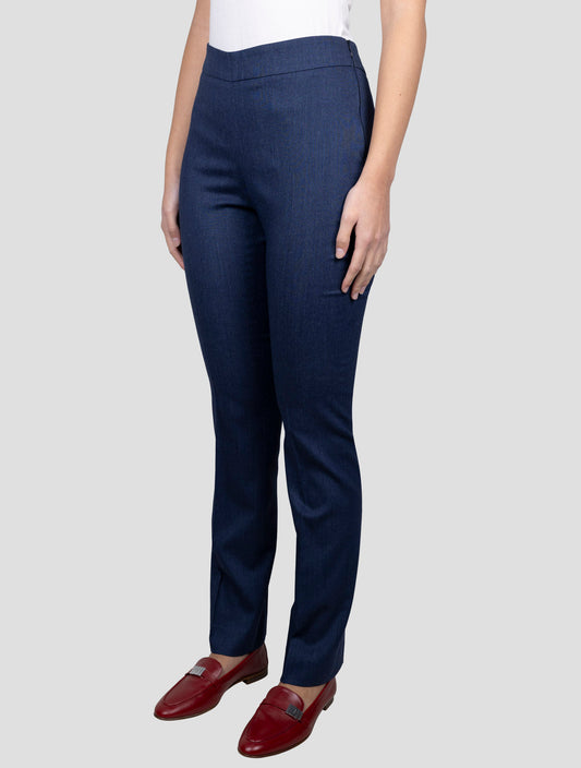 Kiton Blue Linen Pants Women's - Handmade Italian Pied de Poule