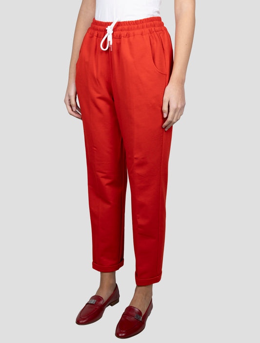 Kiton Red Cotton Elastane Pants - Italian Tailored Women's Trousers