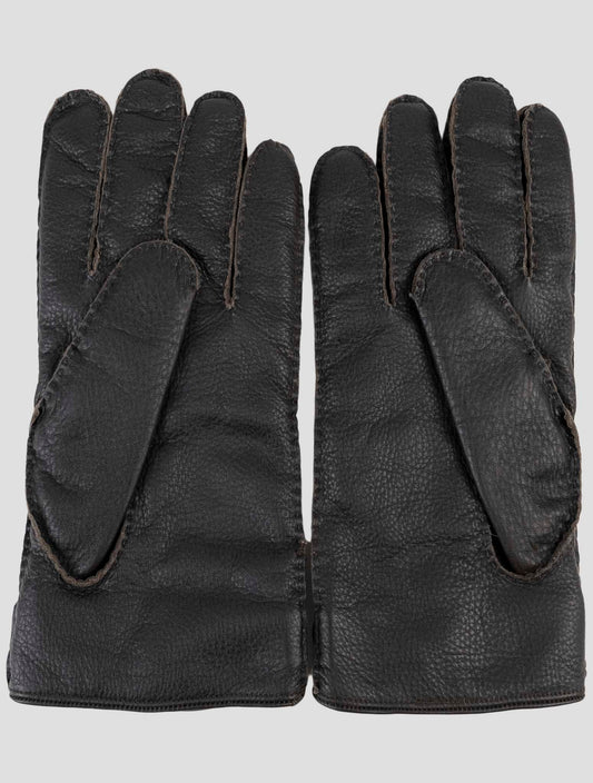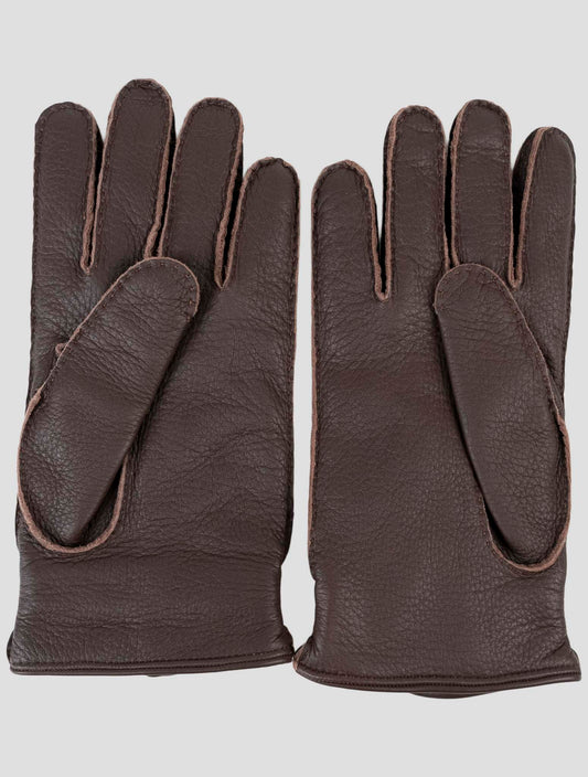 Kiton Handmade Brown Leather Gloves - Italian Premium Mens Winter